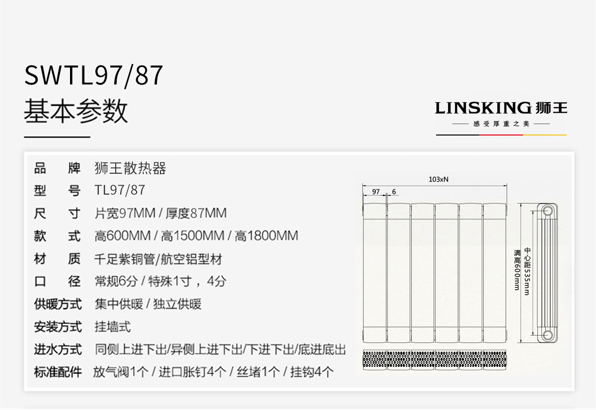 銅鋁復合暖氣片/散熱器97x87